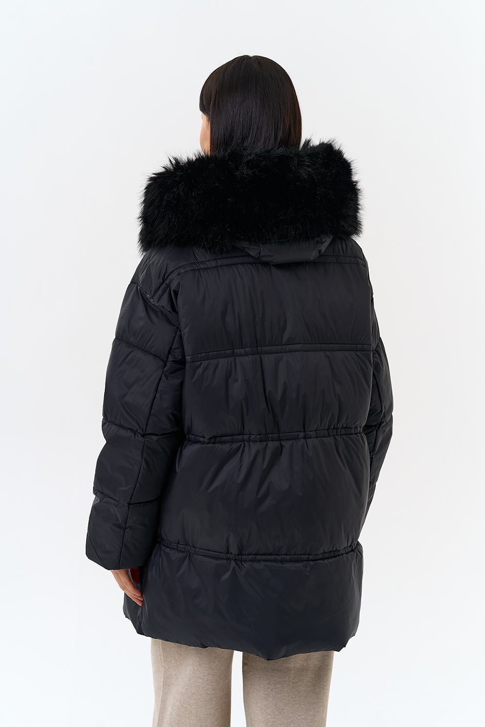 Крой воротника - капюшон, отделка искусственный мех
