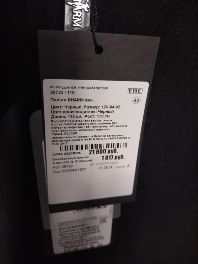 Для жителей Видного у нас действует беспроцентная рассрочка и кредит на выбранный товар — Пальто с английским воротником артикул vidnoe26722. Если у вас остались вопросы напишите или позвоните нам, и мы на них ответим.